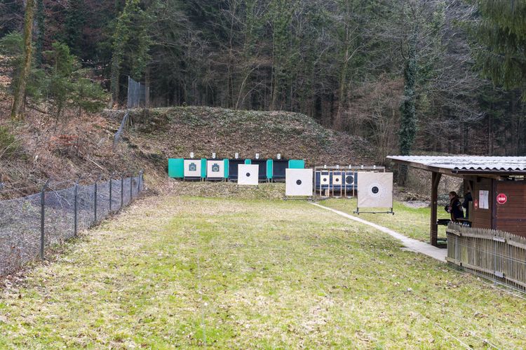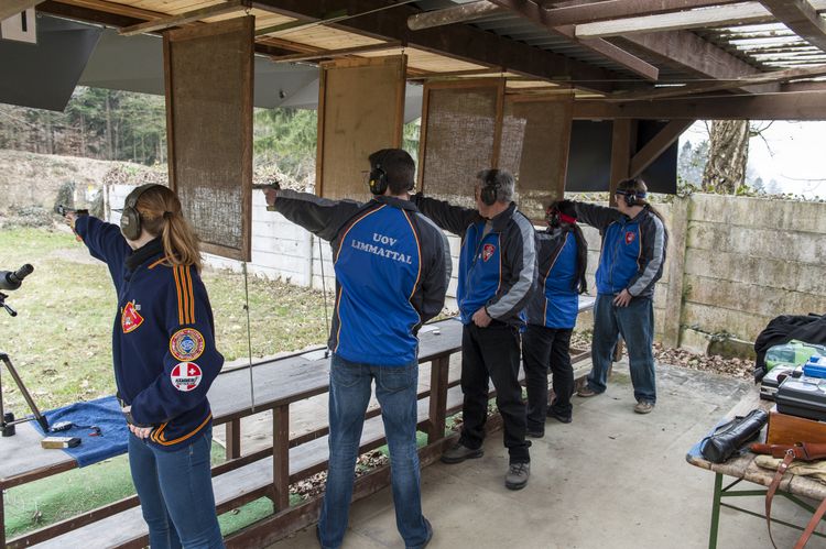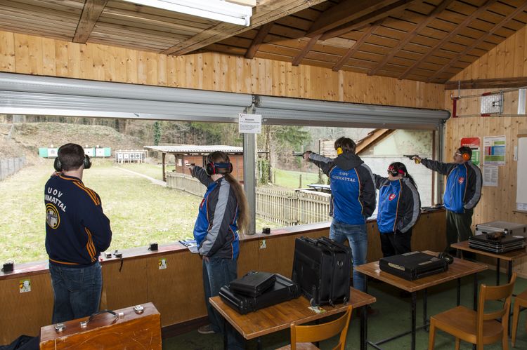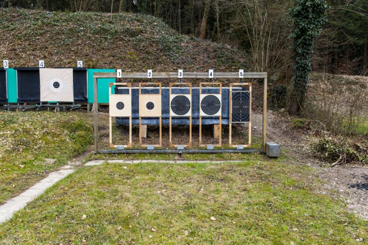 Wir haben hier 5 Dreh-Scheiben zur Verfügung, welche wir für die Grosskaliber-Programme wie das Obligatorische Programm und das Feldschiessen nutzen. Je nach Anlass oder Trainingsziel kann die Anlage aber auch mit Schnellfeuer- oder P-Scheiben bestückt werden. Auch spezielle Disziplinen wie das Duellschiessen oder das Olympische Schnellfeuer werden hier trainiert.
